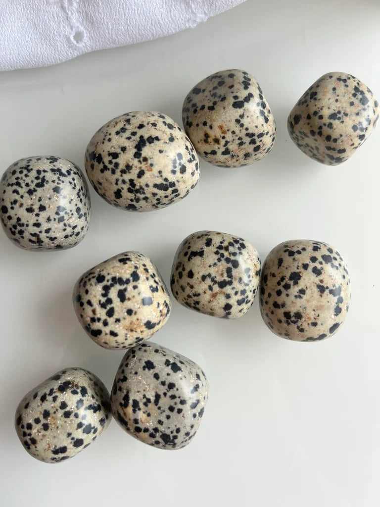 Dalmatian is a great grounding stone, used to remove disillusionment helping one see their strengths and weaknesses more clearly. A supreme nurturer, this stone balances Yin and Yang energies and will absorb negative energy.
