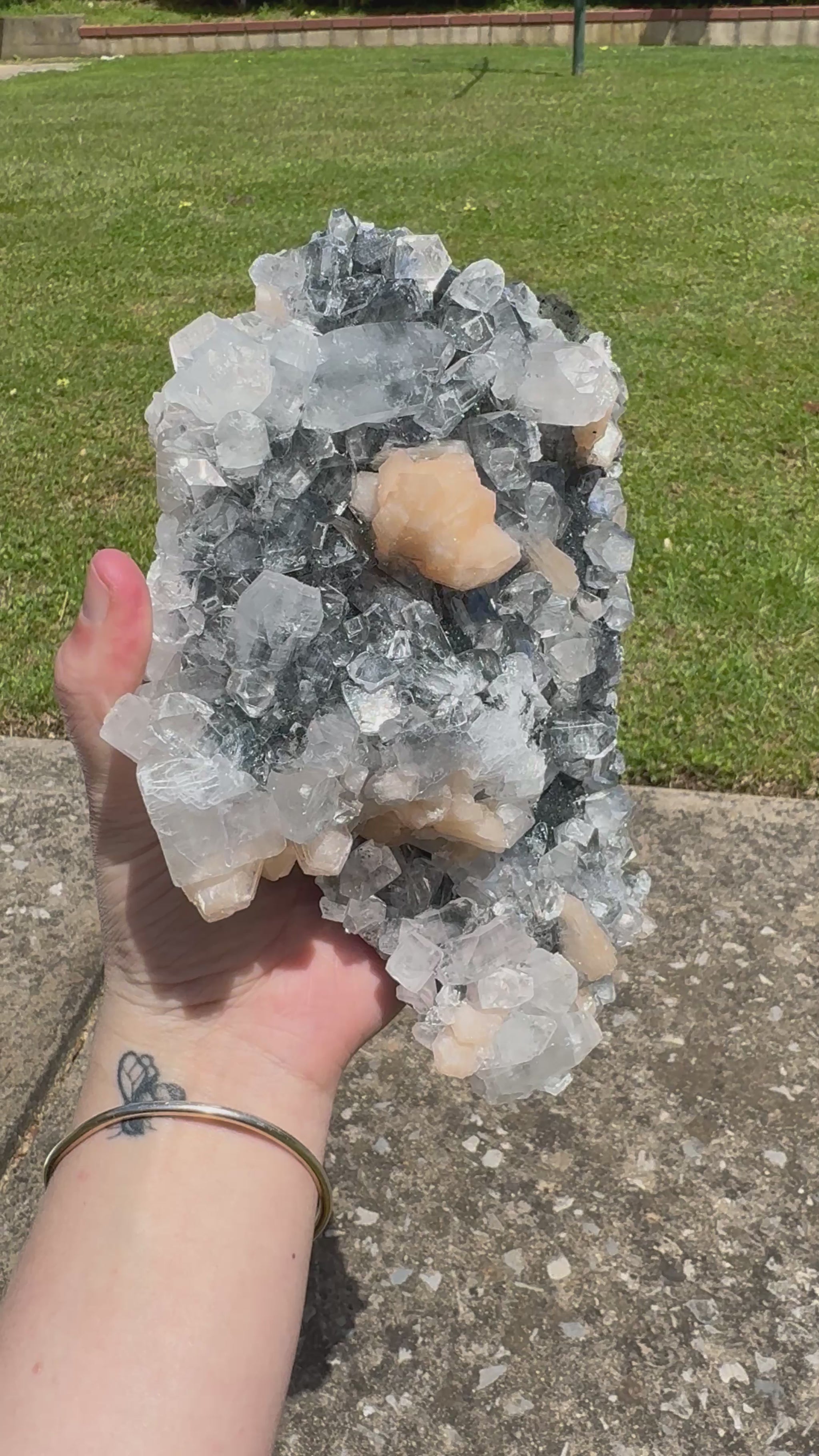 Druzy Black Chalcedony with Apophyllite and Peach Stilbite Specimen