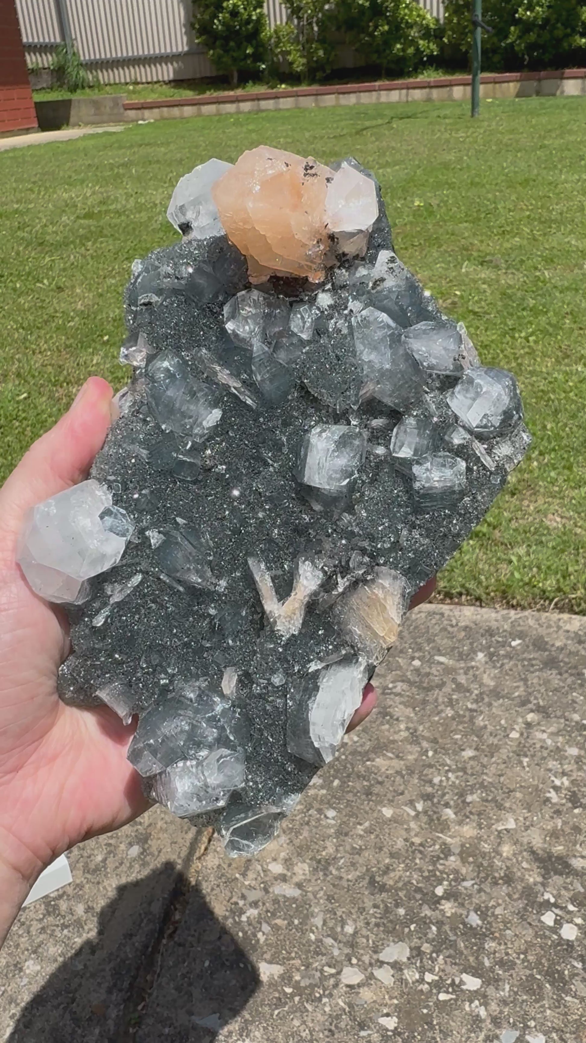 Nestled alongside, the soft and nurturing Peach Stilbite adds a tender vibration of love and emotional renewal. Its energy soothes the heart, encourages self-compassion, and helps you release old wounds with grace.