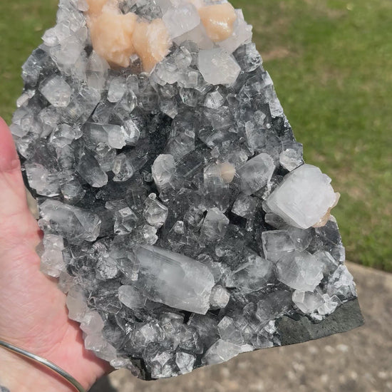 Druzy Black Chalcedony with Apophyllite and Peach Stilbite Specimen