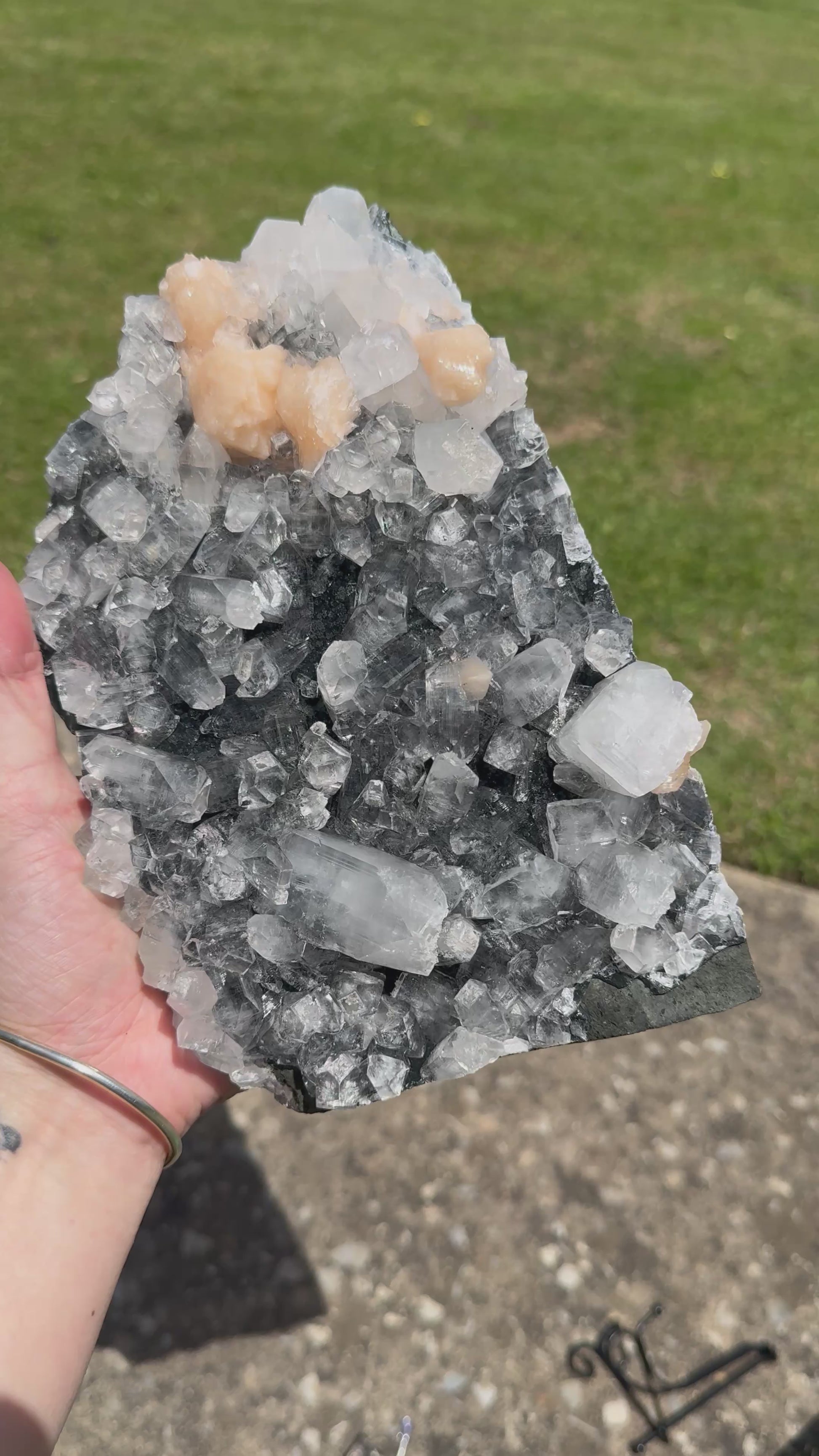 Nestled alongside, the soft and nurturing Peach Stilbite adds a tender vibration of love and emotional renewal. Its energy soothes the heart, encourages self-compassion, and helps you release old wounds with grace.