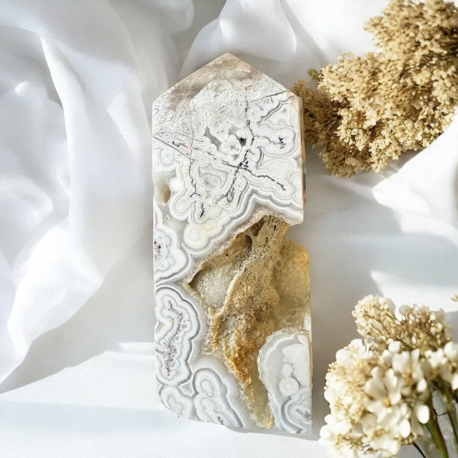Mexican Crazy Lace Agate is a vibrant, joyful stone known as the “Laughter Stone” or “Happy Lace.” Its swirling patterns of bold reds, creams, and browns promote optimism, vitality, and emotional balance. This grounding crystal helps absorb emotional pain, uplift the spirit, and encourage a playful, light-hearted approach to life. Perfect for boosting confidence and protecting your energy, Mexican Crazy Lace Agate brings a sense of stability and joy wherever it’s placed.