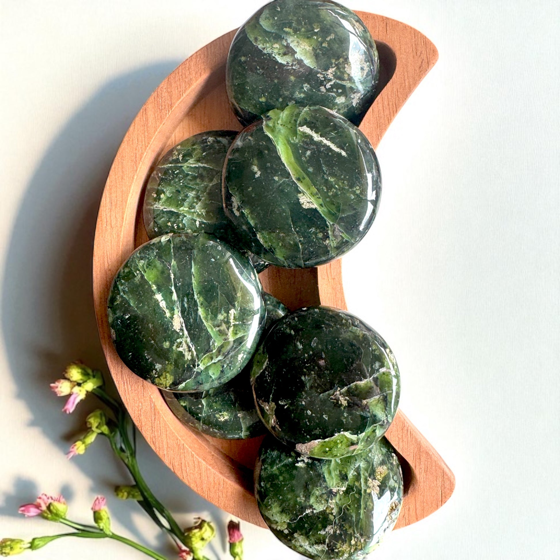 Nephrite is a rich, deep green variety of jade long treasured in ancient cultures for its protective and life-enhancing properties. With its smooth, glossy surface and grounding energy, Nephrite connects deeply to the Earth, offering balance, strength, and a steady flow of chi (life force energy).
