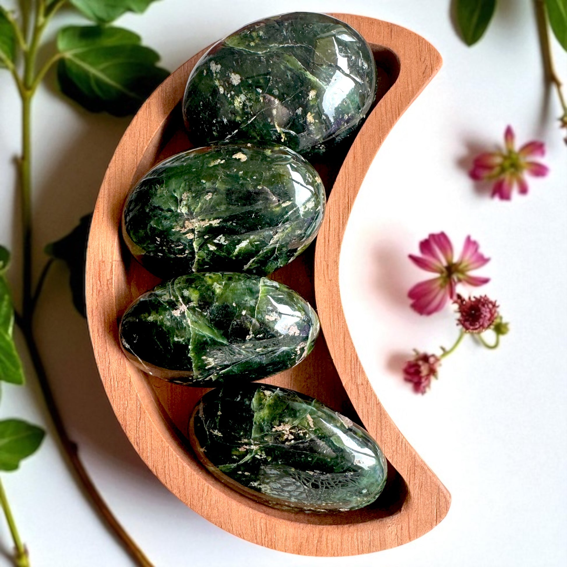 Nephrite is a rich, deep green variety of jade long treasured in ancient cultures for its protective and life-enhancing properties. With its smooth, glossy surface and grounding energy, Nephrite connects deeply to the Earth, offering balance, strength, and a steady flow of chi (life force energy).