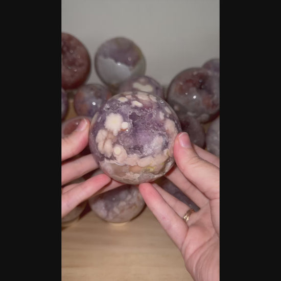 Pink Amethyst + Amethyst + Flower Agate Sphere 7cm